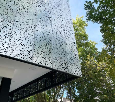 Desarrollamos fachadas de chapa perforada a medida, trabajando junto al cliente para desarrollar diseños especiales, elegir la morfología del panel y su modulación. Esto nos permite crear productos exclusivos, que combinan identidad visual, funcionalidad y eficiencia.