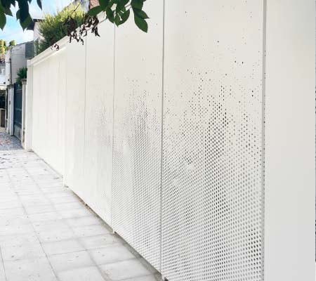 Los frentes en chapa perforada son ideales para dar identidad y carácter a residencias y locales. Permiten personalizar el diseño exterior, aportando privacidad, seguridad y un estilo contemporáneo.