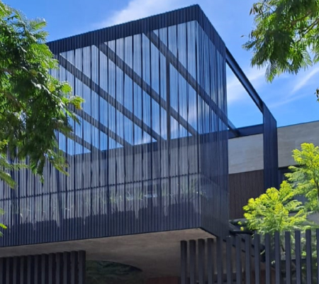 Los parasoles metálicos perforados permiten regular la entrada de luz solar, mejorar la eficiencia energética y otorgar privacidad. Pueden adaptarse con distintos patrones y niveles de perforación según las necesidades de cada ambiente.
