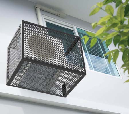 Fabricamos cobertores metálicos perforados que integran de forma estética equipos técnicos como aires acondicionados, depósitos o maquinarias. Logran disimular estos elementos sin afectar su funcionamiento, aportando una imagen más armoniosa.