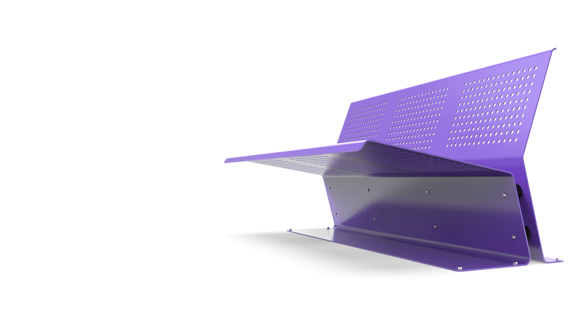 Fabricado en chapa de acero de 4.75 mm de espesor, el banco Alas se destaca por su alta resistencia, gran durabilidad y estabilidad, siendo ideal para espacios públicos de alto tránsito.