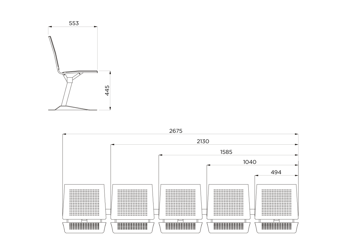 La línea de bancos Anglo está diseñada en formato tándem y se fabrica en una amplia variedad de tamaños, ofreciendo flexibilidad para diferentes espacios y configuraciones.