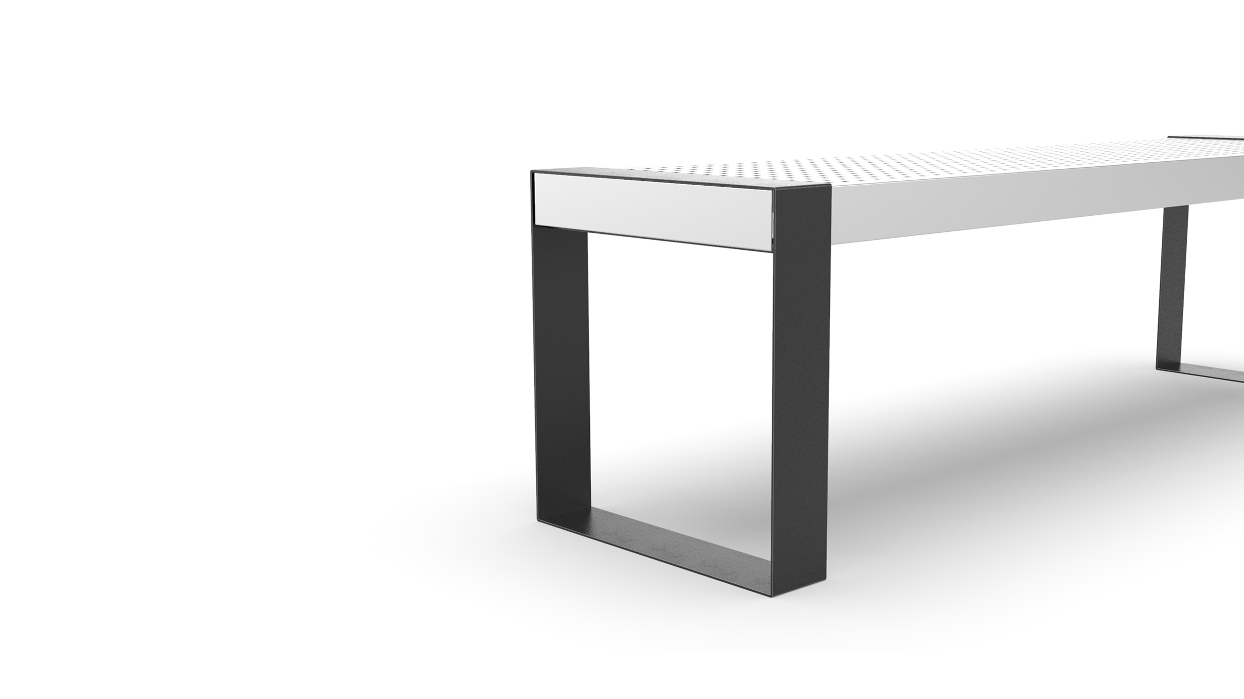 Fabricado íntegramente en acero, el Banco Eros es una pieza duradera y confiable, ideal para plazas, parques y espacios públicos de alto tránsito.