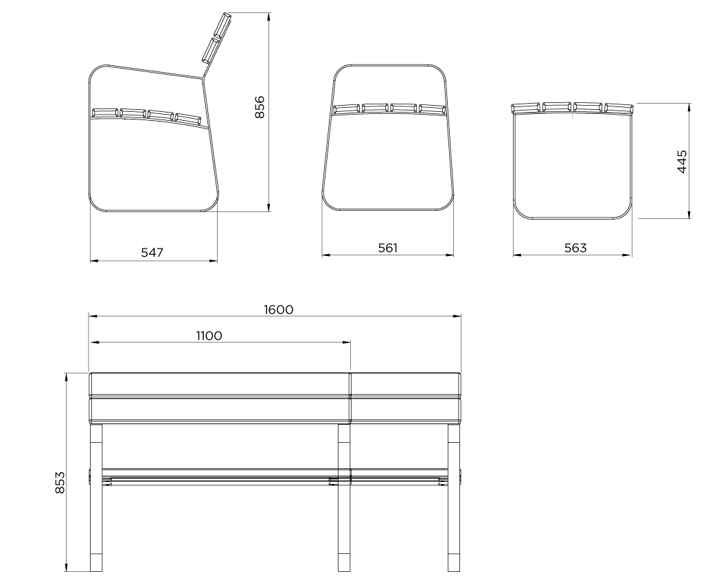 Un banco robusto y elegante, creado para integrarse con armonía en los espacios urbanos y naturales.