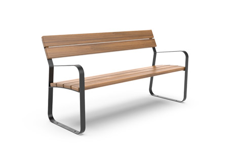 El Banco Galo está pensado para plazas y parques, con un diseño estilizado y funcional que le permite adaptarse a una gran variedad de entornos.