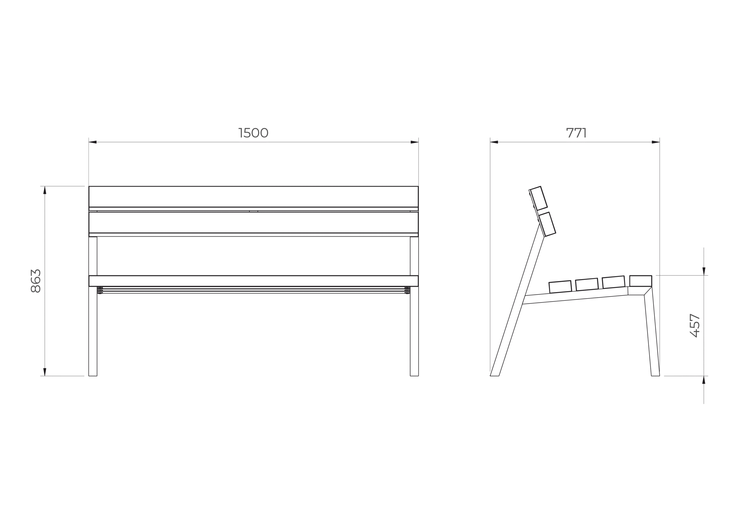 Un banco versátil, sólido y elegante, diseñado para resistir y embellecer los espacios urbanos.