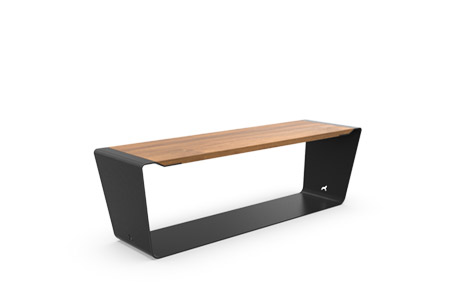 Un banco minimalista, versátil y resistente, diseñado para diferentes formas de uso en el espacio urbano.