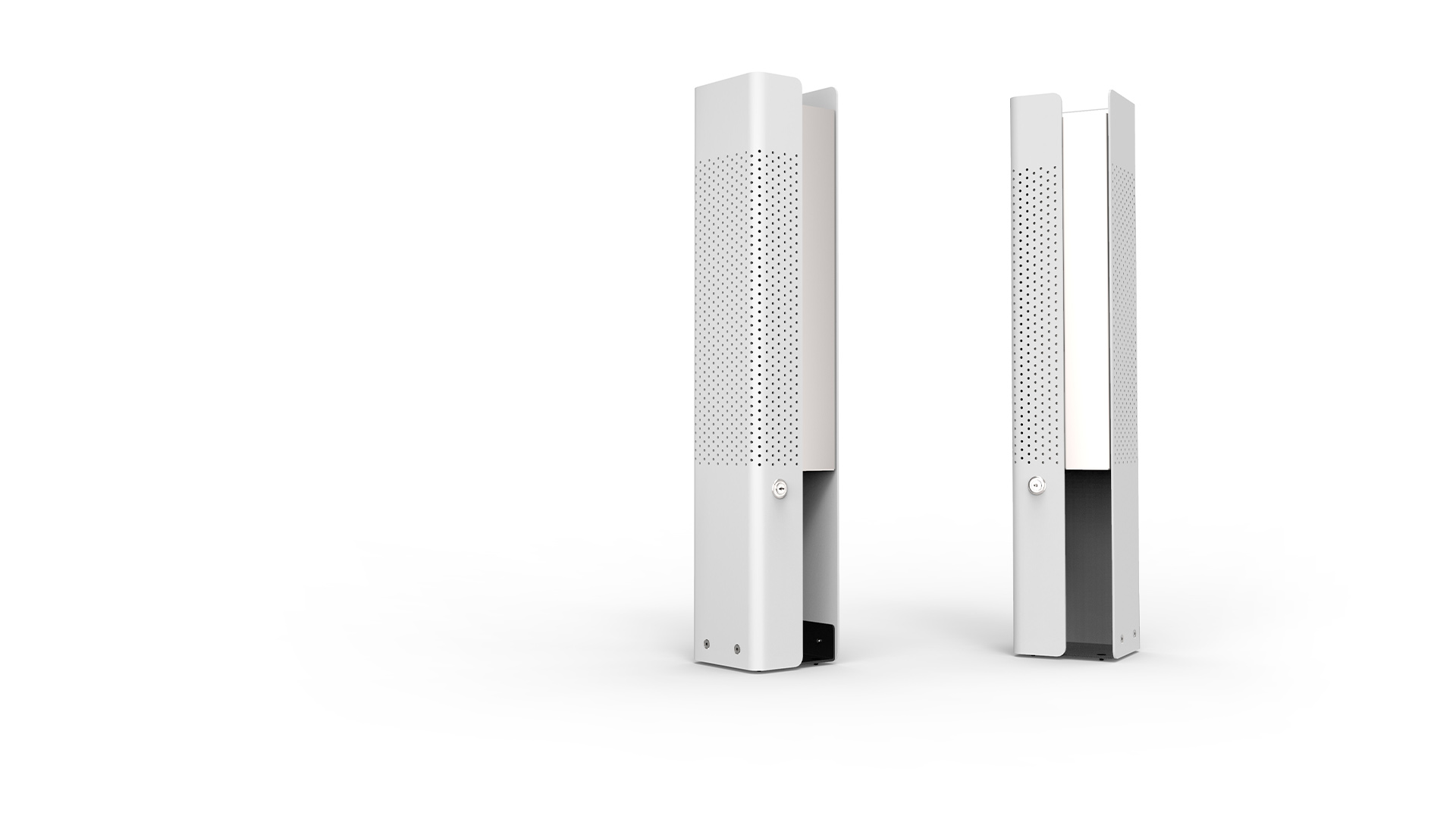 Construido en chapa perforada, se adapta fácilmente a las necesidades de cualquier espacio, ofreciendo una solución funcional, moderna y durable. Su diseño minimalista permite integrarlo de manera armónica con otros elementos de mobiliario urbano, manteniendo una estética uniforme y contemporánea.