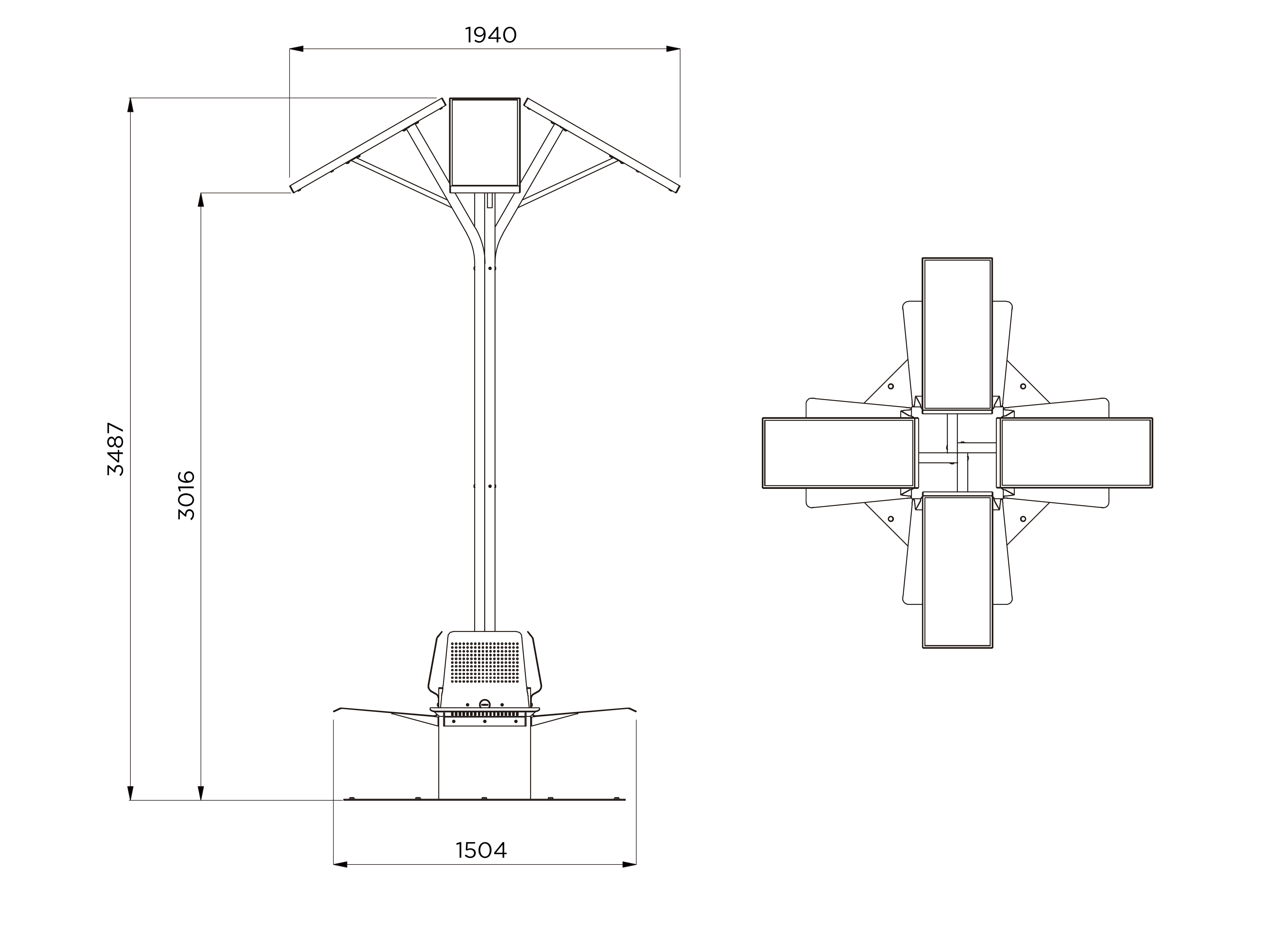 Cuenta con 4 asientos integrados, lo que la convierte en un punto de encuentro ideal para plazas, parques, campus o áreas recreativas. También está disponible en versión sin asientos, adaptándose a diferentes contextos y necesidades de uso.