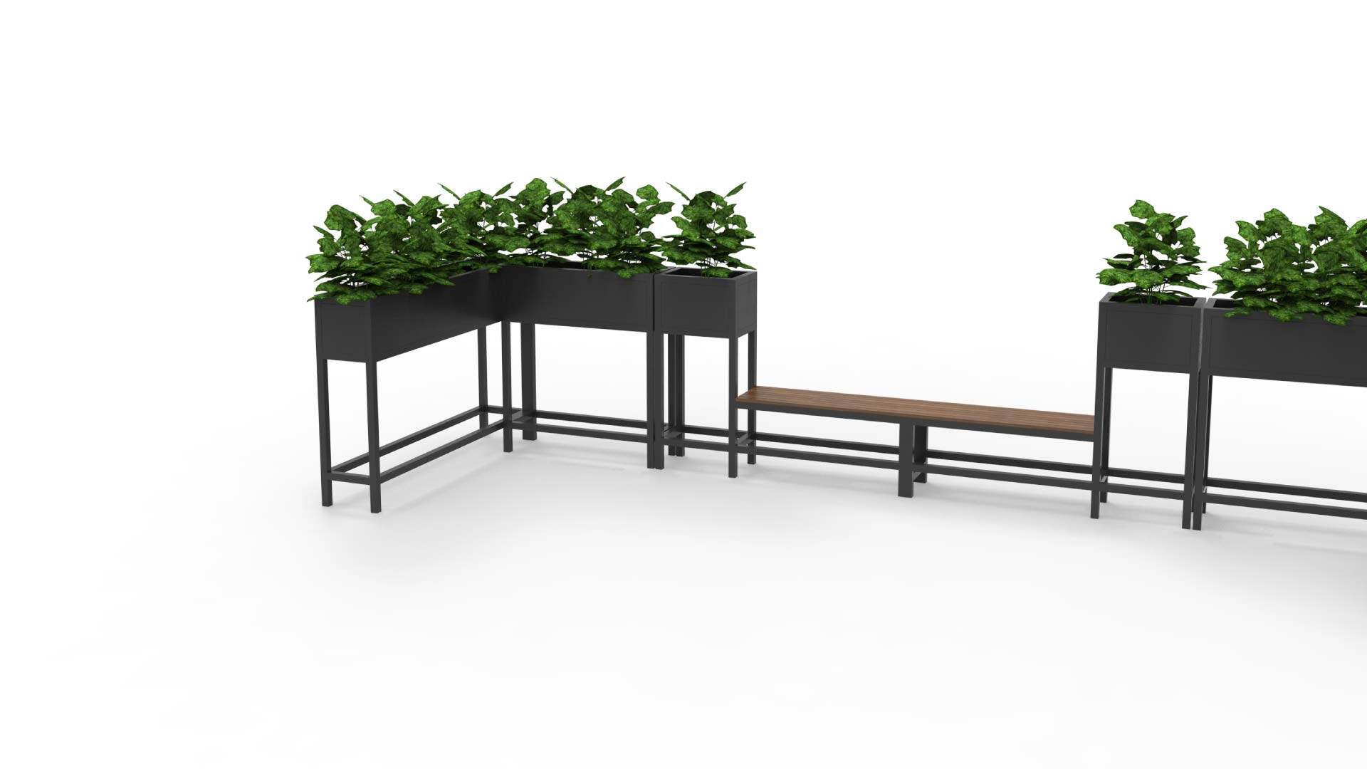 Cada módulo puede funcionar como macetero o como banco, permitiendo múltiples combinaciones para adaptarse a distintos contextos y necesidades. Su diseño versátil facilita crear parklets lineales, en “L” o en diferentes disposiciones, integrando verde y mobiliario de descanso en la ciudad.
