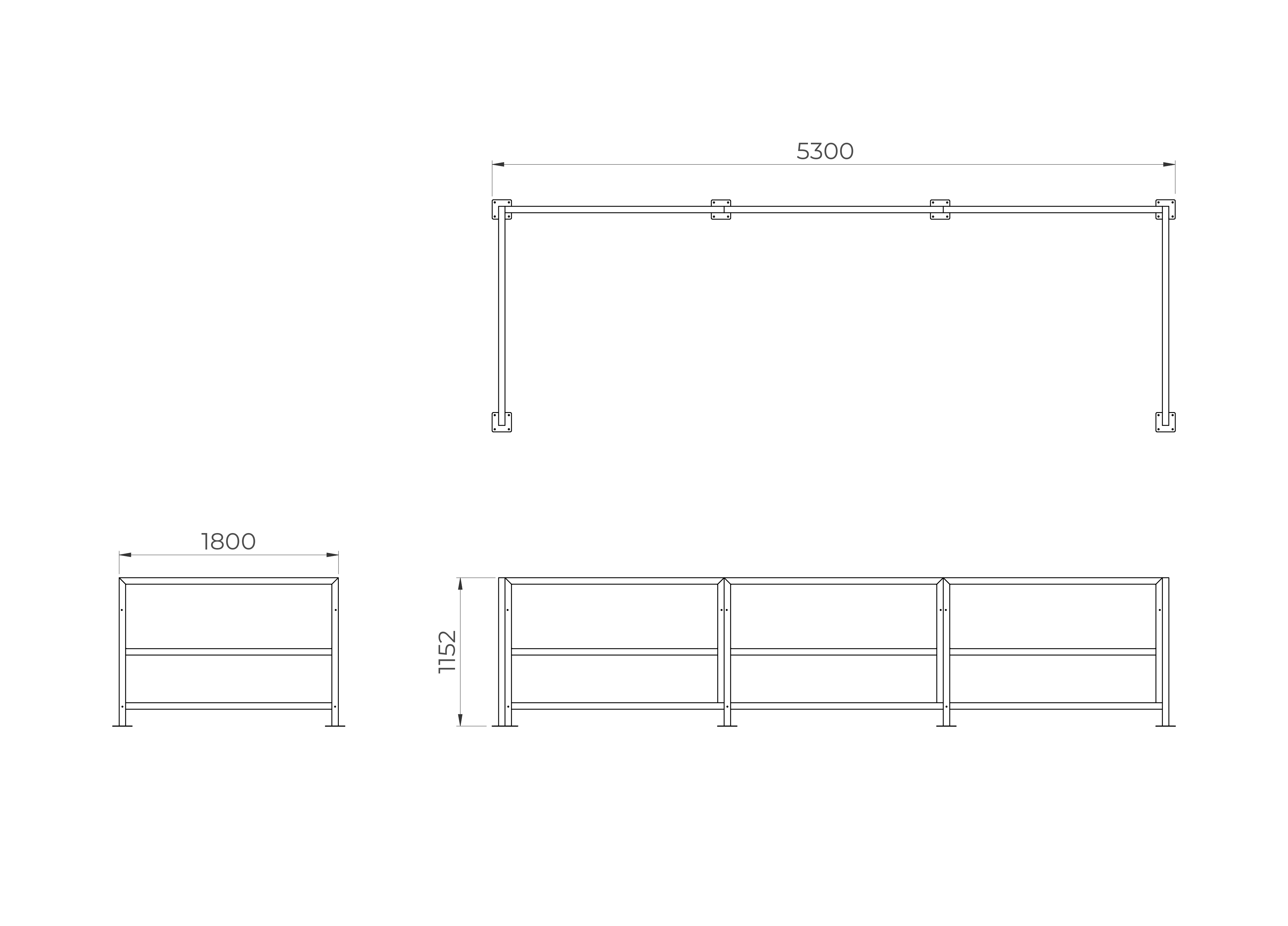 Fabricado en estructura metálica robusta, cuenta con bases para amurar, garantizando una fijación firme y segura en la vía pública. Puede realizarse con chapa entera o en versión de media chapa, dejando espacio inferior para una mayor integración visual con el entorno.
